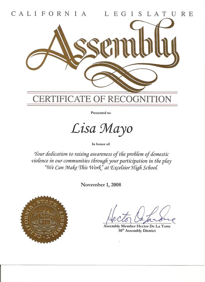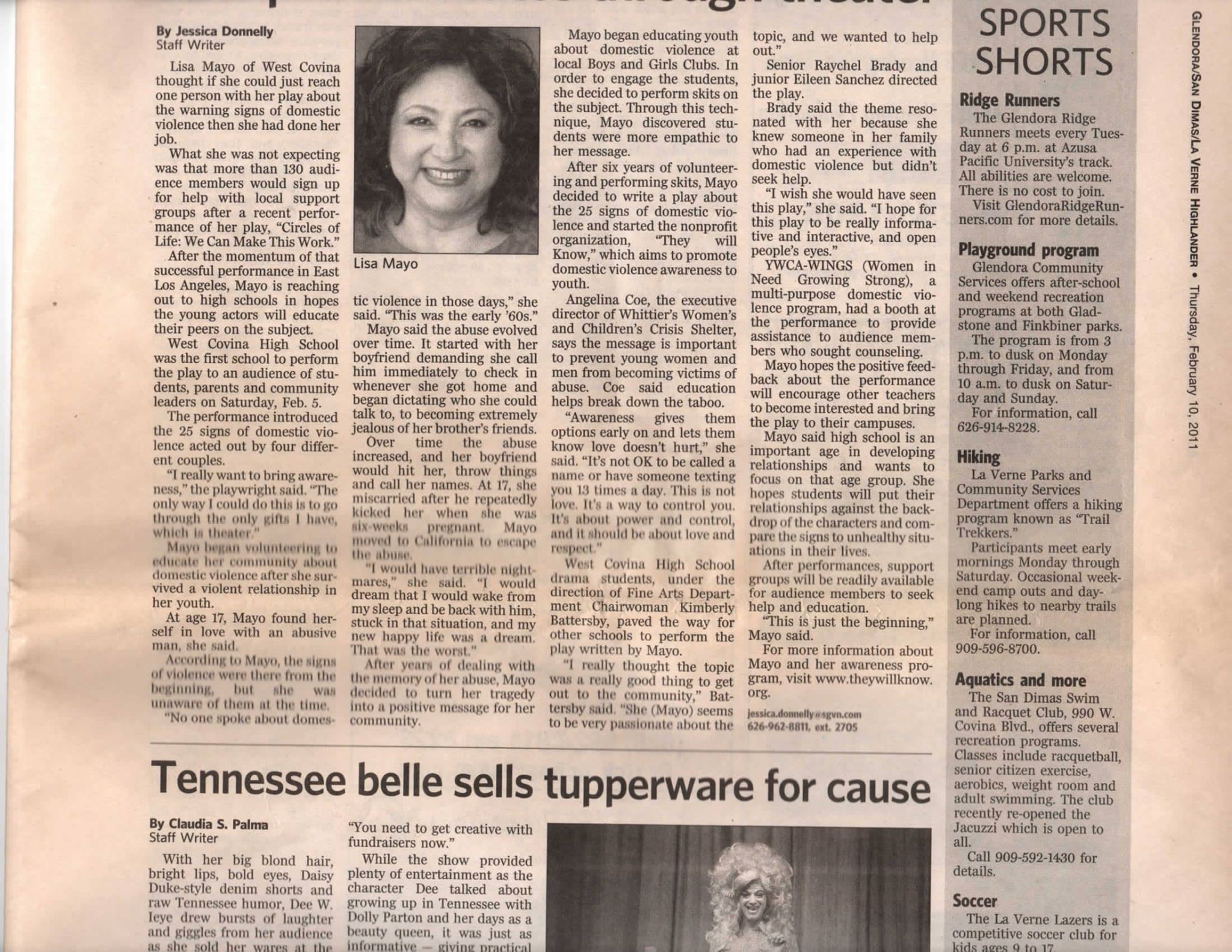 Lisa Mayo of West Covina thought if she could just reach one person with her play about the warning signs of domestic violence then she had done her job.